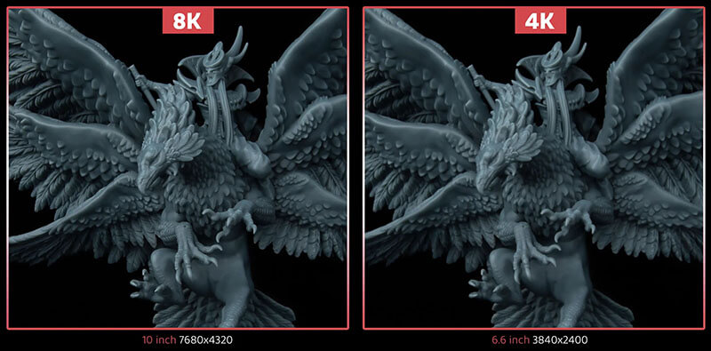 Новая монохромная матрица с диагональю 10 дюймов, как следует из самого названия 3Д-принтера, теперь обеспечивает разрешение 7680×4320 px, то есть честные 8K. Это позволяет за один цикл напечатать целую серию небольших объектов с исключительно высокой точностью и детализацией. Можно напечатать один крупный объект высотой до 25 см, и его детализация также будет на высоте. Контрастность этой матрицы составляет 380:1, что крайне положительно сказывается на точности печати. Толщина одного слоя в зависимости от настроек может варьироваться от 0.01 до 0.2 мм.