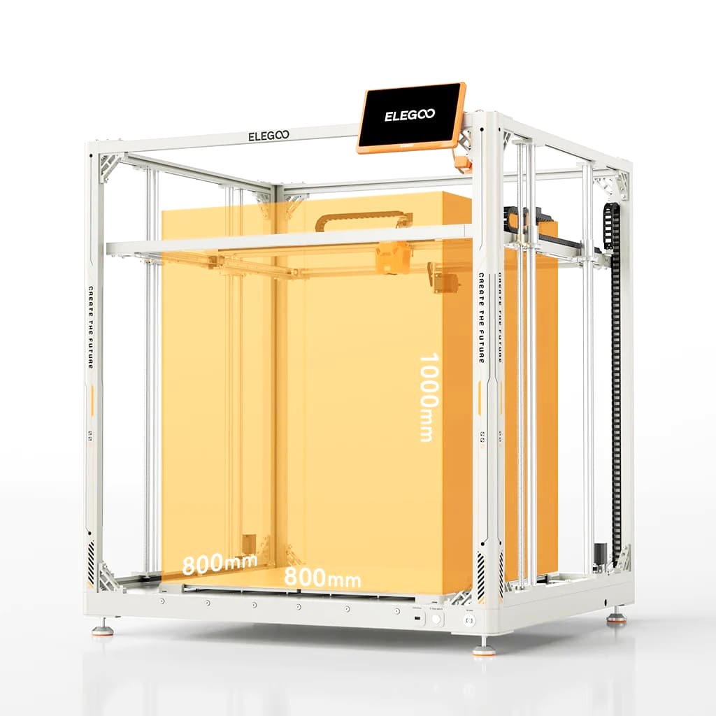 3D-принтер Elegoo OrangeStorm Giga — это крупногабаритная промышленная FDM-система с рекордной рабочей зоной 800 × 800 × 1000 мм. Максимальная температура сопла — 300 °C, а скорость выращивания достигает 300 мм/с (рекомендуемая — 150 мм/с). Принтер поддерживает установку до 4 экструдеров, что открывает возможности для многосопловой и мультиматериальной печати.