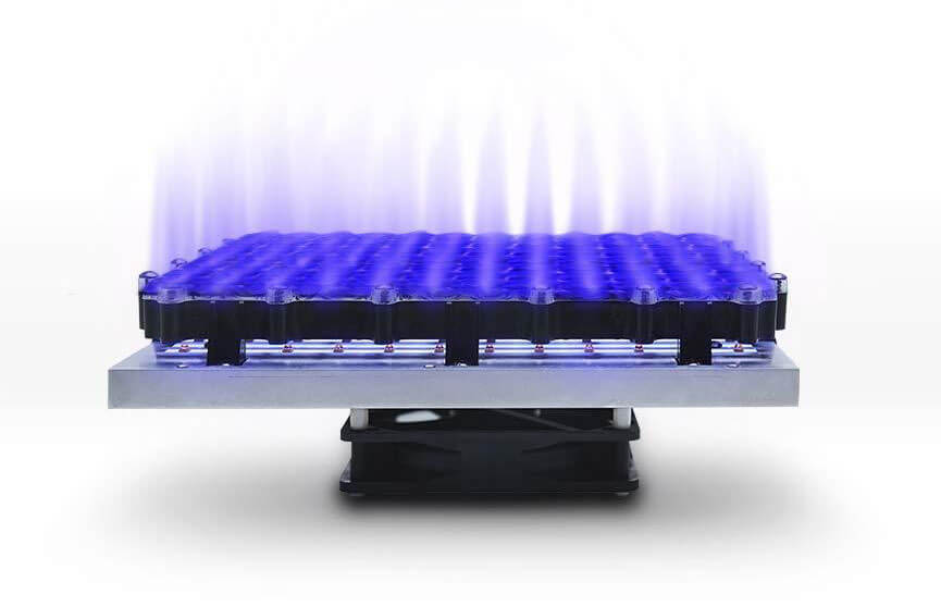 Для засветки слоев используется светодиодная матрица с 96 источниками УФ-света мощностью 130 Вт. Равномерное засвечивание позволяет получить изделие высокого качества, а также ускорить печать. Принтер совместим с последней версией Chitu 1.65, которая проще в работе, чем другие слайсеры.