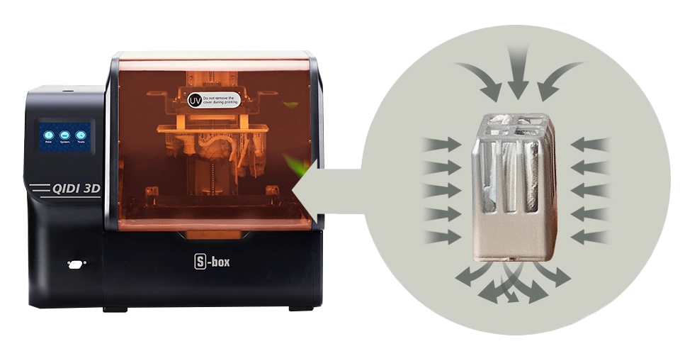 3D принтер QIDI Tech S-Box - новинка 2020 года с увеличенной областью построения 215х130х200 мм. 2К матрица третьего поколения с дисплеем 10,1 дюйма позволяет печатать в высоком разрешении. Равномерная засветка рабочей области позволяет задействовать всю полезную площадь принтера.