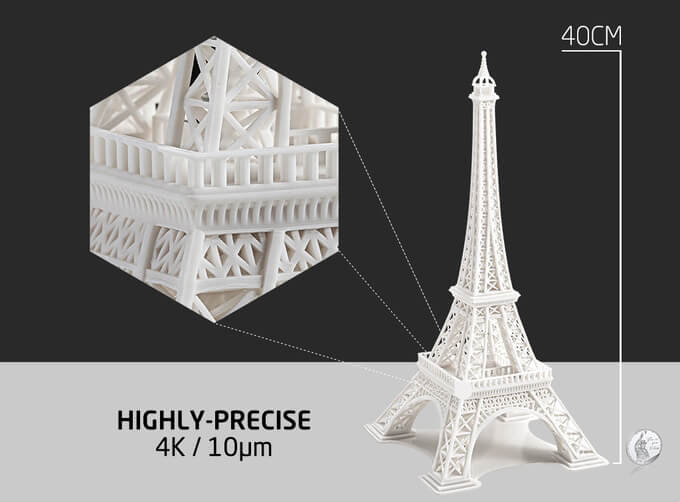 SparkMaker Print Hero 4K - одна из ожидаемых новинок 2020 года во всем мире. Матрица 4К с разрешением 3840х2160 позволяет печатать объекты с высокой степенью детализации. При этом скорость работы принтера достаточно велика - 30 мм/ч. За довольно короткое время на принтере можно изготовить серию маленьких изделий или создать крупную деталь.