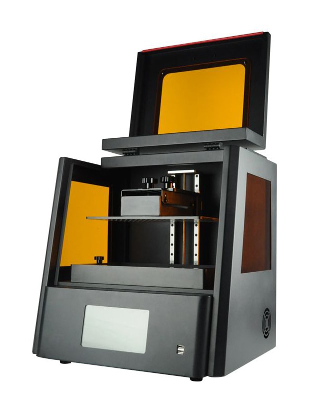 Для работы можно использовать фотополимеры любых производителей. Ванна для смолы крепится с помощью удобных больших барашков, что делает замену фотополимера комфортной и быстрой. Внутри рабочей камеры установлены фильтры, поглощающие неприятные запахи при печати.
