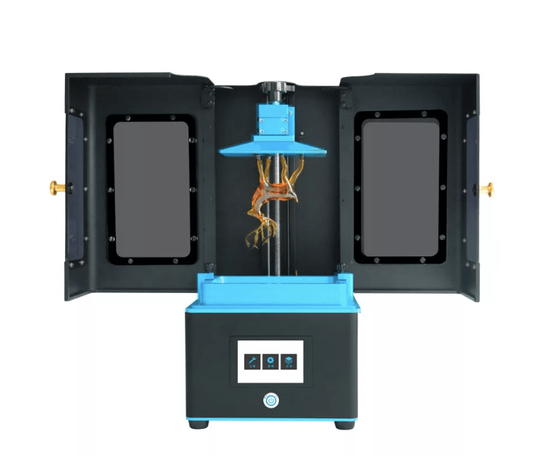 Система вентиляции воздуха с карбоновыми фильтрами и плотно закрывающиеся створки камеры помогают эффективно очищать воздух. Распашные дверцы являются особенностью этого принтера – угол открывания 210° позволяет аккуратно извлечь изделие, не повредив выступающие хрупкие части.