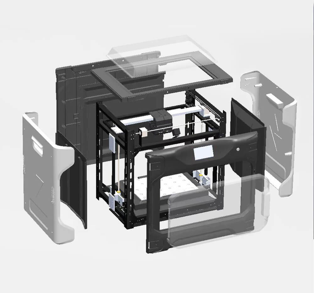 Электроника QIDI Tech i-Fast вполне соответствует техническим возможностям этого принтера. За питание принтера отвечает блок мощностью 700 Вт. Уже в стандартной комплектации можно загружать файлы на печать как с USB, так и удалённо через Wi-Fi. Также можно задать все параметры печати и отслеживать её прогресс с помощью 5-дюймового цветного тачскрина с удобным интерфейсом.