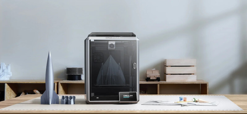 3D принтер Creality CR-K1 Max имеет полностью закрытый корпус, что делает его привлекательным вариантом для печати при высоких температурах с использованием таких материалов, как ASA, PC и PA. Верхняя крышка помогает стабилизировать температуру в камере печати.