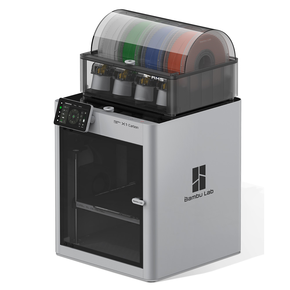 3D-принтер Bambu Lab X1 Carbon Combo (X1CC, EU) — это высокоскоростная FDM-система с интеллектуальной автоматизацией и поддержкой многоматериальной печати. Максимальная температура сопла составляет 300 °C, а рабочая область — 256 × 256 × 256 мм. Принтер оснащён одной печатающей головкой и модулем автоматического управления филаментом AMS, позволяющим печатать до 4 материалов или цветов одновременно.