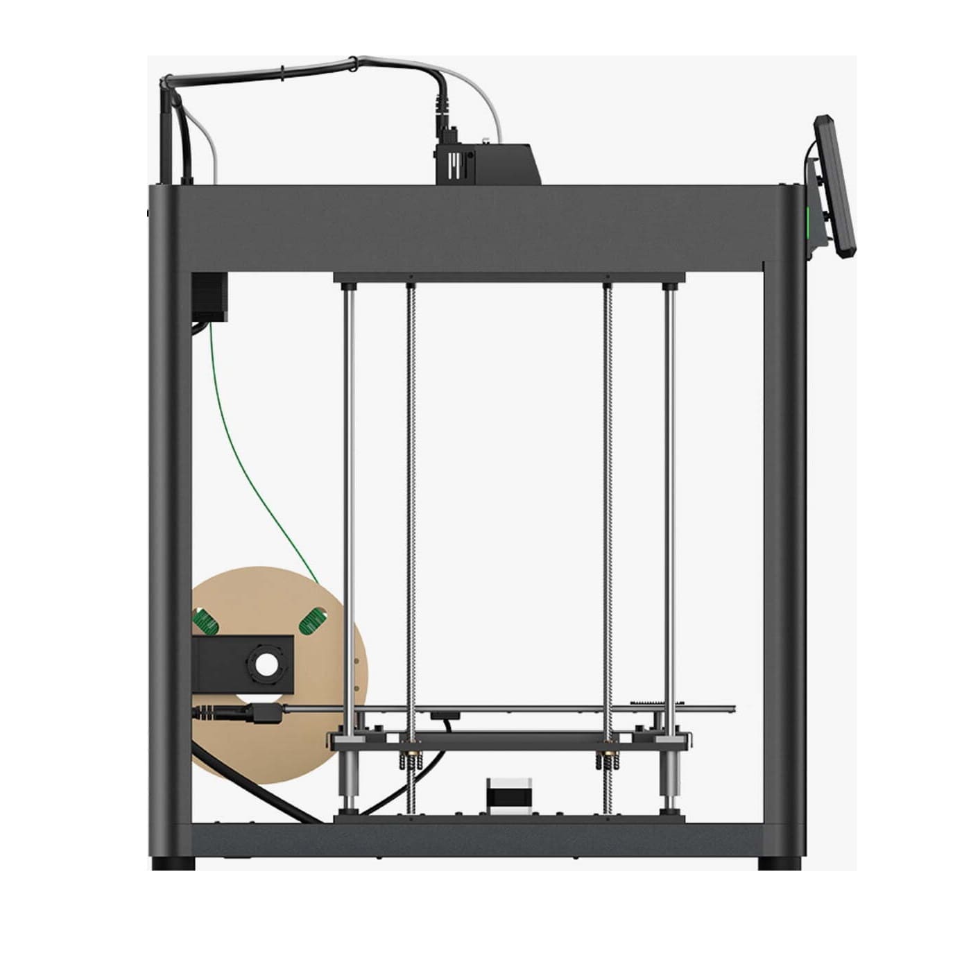 Рама принтера изготовлена из алюминия, что обеспечивает высокую жёсткость и устойчивость. Ось X оснащена высокоточной линейной направляющей, а ось Z — двумя независимыми двигателями, двумя парами ходовых винтов и двумя парами направляющих. Такая симметричная конструкция исключает перекосы при печати высоких и массивных деталей.