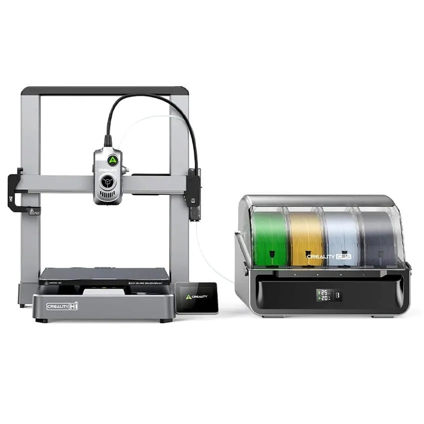 3D-принтер Creality Hi Combo — это настольная открытая система с рабочей зоной 260 × 260 × 300 мм и максимальной температурой сопла 300 °C, предназначенная для качественной многоцветной печати. Принтер поставляется практически в собранном виде и уже включает в комплект систему автоматической смены филамента CFS на 4 катушки. При подключении до 4 модулей CFS (ещё 3 дополнительно) можно использовать до 16 цветов одновременно.