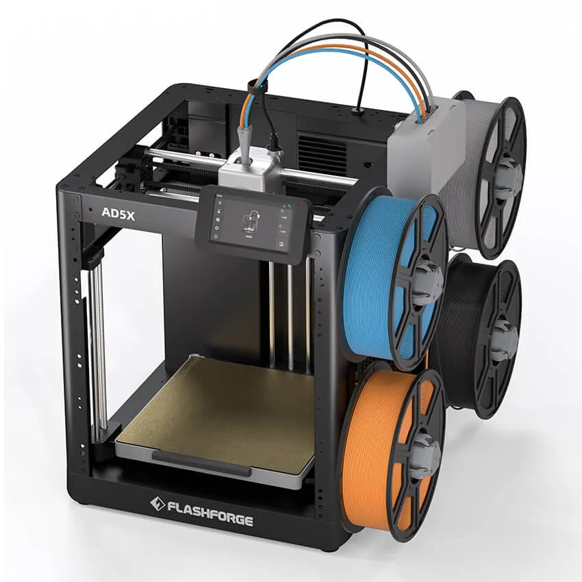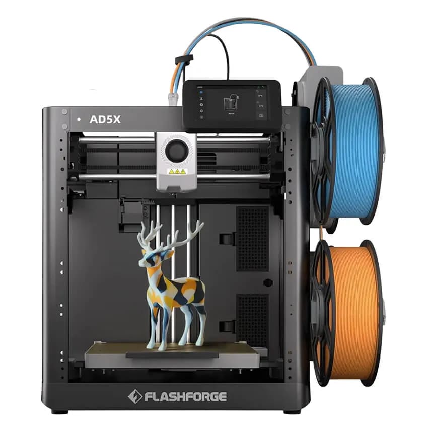 FlashForge Adventurer 5X — универсальный и мощный 3D-принтер, способный выполнять **многоцветную печать до четырёх цветов одновременно**. Устройство сочетает высокую скорость — до 600 мм/с при ускорении 20 000 мм/с² — с надёжностью и простотой эксплуатации, что делает его отличным выбором для пользователей, которым важна производительность, гибкость и качество.