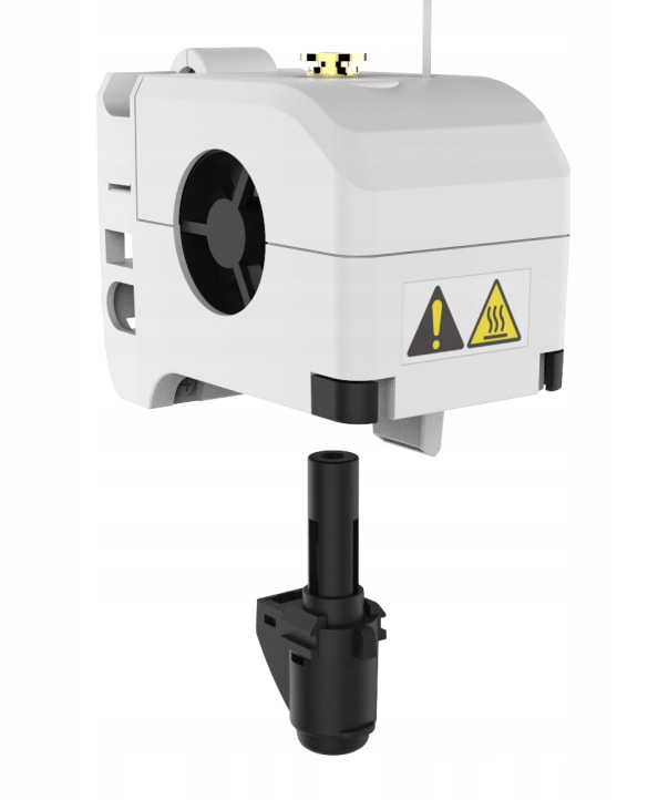 Экструдер способен разогреваться до 240 °С всего за 1 минуту. Если появится необходимость в очистке или замене он легко снимается всего одним движением. Механика принтера обеспечивает скорость печати до 100 мм/с при толщине слоя 200 мкм. При всём этом механизм очень тихий, и в ходе печати уровень шума не поднимается выше 45 децибел.