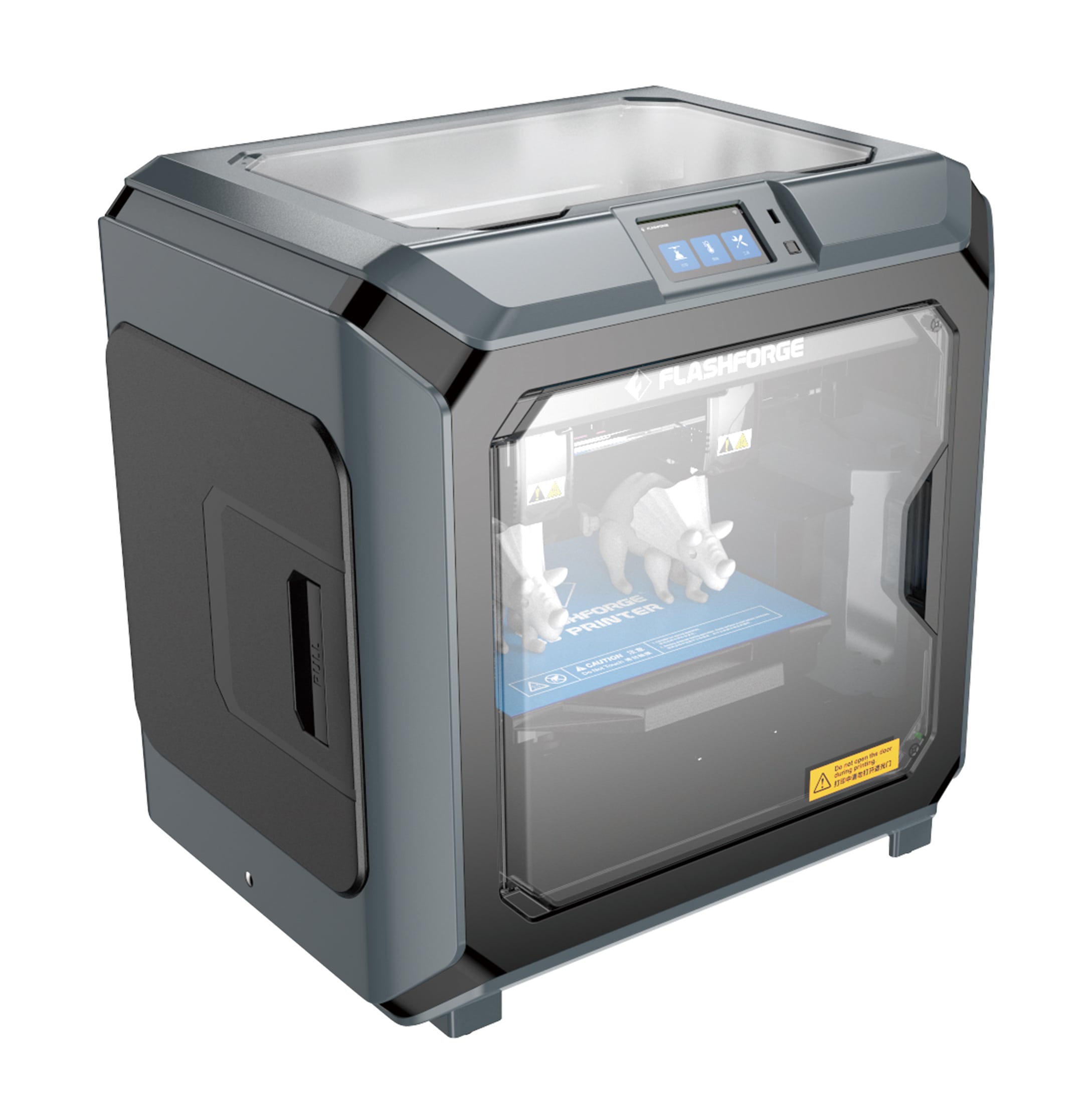 FlashForge Creator 3 получил цветной сенсорный дисплей 4,5” с интуитивно понятным интерфейсом. Для загрузки данных можно использовать USB, Ethernet (LAN) и Wi-Fi. В рабочей зоне установлена HD-камера, которая позволяет удалённо контролировать печать. Для подготовки моделей к печати используется мощный проприетарный слайсер FlashPrint. Для передачи данных можно воспользоваться фирменным облачным сервисом FlashCloud. Благодаря продвинутой электронике принтер имеет функцию автоматического интеллектуального выравнивания оси Z и функцию автоматического возобновления печати.