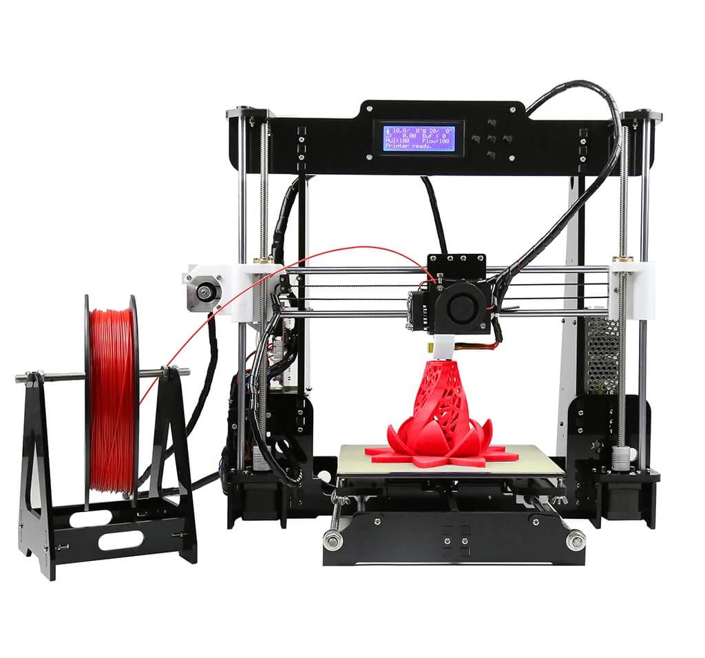 3D принтер Anet A8 от китайской фирма-производителя является надежной моделью, имеющей модульную структуру. Идеально подойдет тем, кто только начинает осваивать 3D печать. Стильный и при этом простой дизайн позволяет конструкции использоваться как в офисе, так и дома. Принтер достаточно мобилен за счет небольшого веса 8,5 кг.