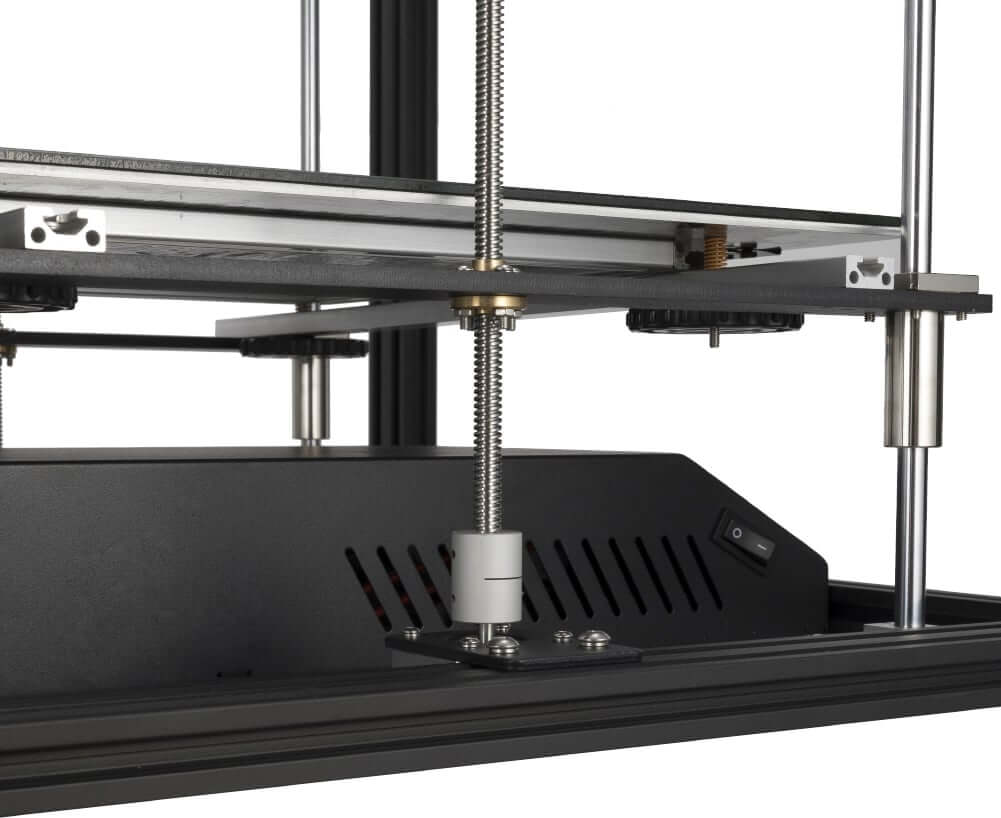 Печатная платформа также имеет подогрев. Её максимальная температура 110 градусов, и она способна разогреваться до этого значения всего за 10 минут за счёт мощного блока питания 500W. Сам по себе источник питания не только является мощным, но и отлично защищён от перегрева.