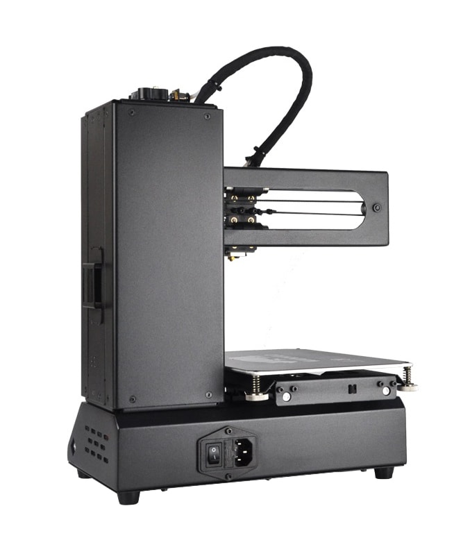 Принтер поставляется полностью собранным, что позволяет начать печать сразу же после распаковки и настройки. Несмотря на небольшие размеры, все направляющие и компоненты выполнены из стали. Металлические элементы и усиленная ось Z делают печать стабильной.