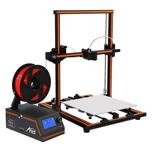 3D принтер Anet E12, особенность данной модели увеличенная область печати размером 300х300х400 мм. Оснащен надежными узлами и компонентами, рама по оси Z и подогреваемая платформа выполнены из алюминия, а основание Y из стали, общий вес составляет 8,8кг. Для управления основными функциями и контроля есть LCD дисплей, в качестве подключения предусмотренs USB и MicroSD. Для устройств такого типа аппарат достаточно бесшумен.