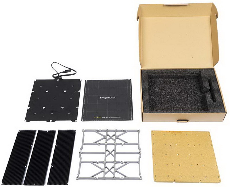 Snapmaker 2.0 A250 3в1 поставляется в формате DIY. Впрочем, сборка не вызывает никаких проблем, а сменные модули устанавливаются одним движением. Печатная платформа FDM-принтера калибруется автоматически и имеет подогрев до 100 градусов. Также очень полезной функцией при печати оказывается датчик контроля филамента.