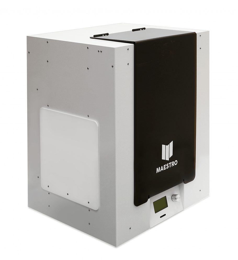 Производитель разработал свое собственное программное обеспечение: Maestro Wizard, которое доступно и удобно в освоении любому пользователю. Опционально 3D принтер поставляется с соплом 0,4 мм, однако можно выбрать и следующие размеры: 0,2/0,3/0,5 мм. Один из немногих отечественных производителей, которые смогли совместить большую камеру печати: 240x240x295, что позволит вам создавать крупные и объемные модели без использования склейки. В полностью закрытом корпусе. Принтер поставляется с датчиком автоматической калибровки стола и датчиком окончания материала и цветовым дисплеем.