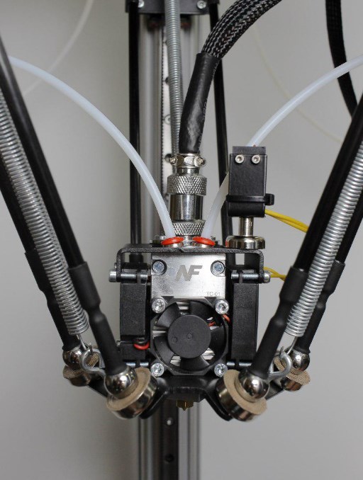 Принтер с дельта кинематикой обеспечивает высокую точность печати. Печатающая головка подвешена на 6 диагоналях, которые перемещаются на 3 каретках. Такая схема обеспечивает движение исключительно печатающей головки, в то время, как сама деталь остается на столе в неподвижном состоянии. Небольшой вес печатной головки позволил производителю увеличить скорость печати.
