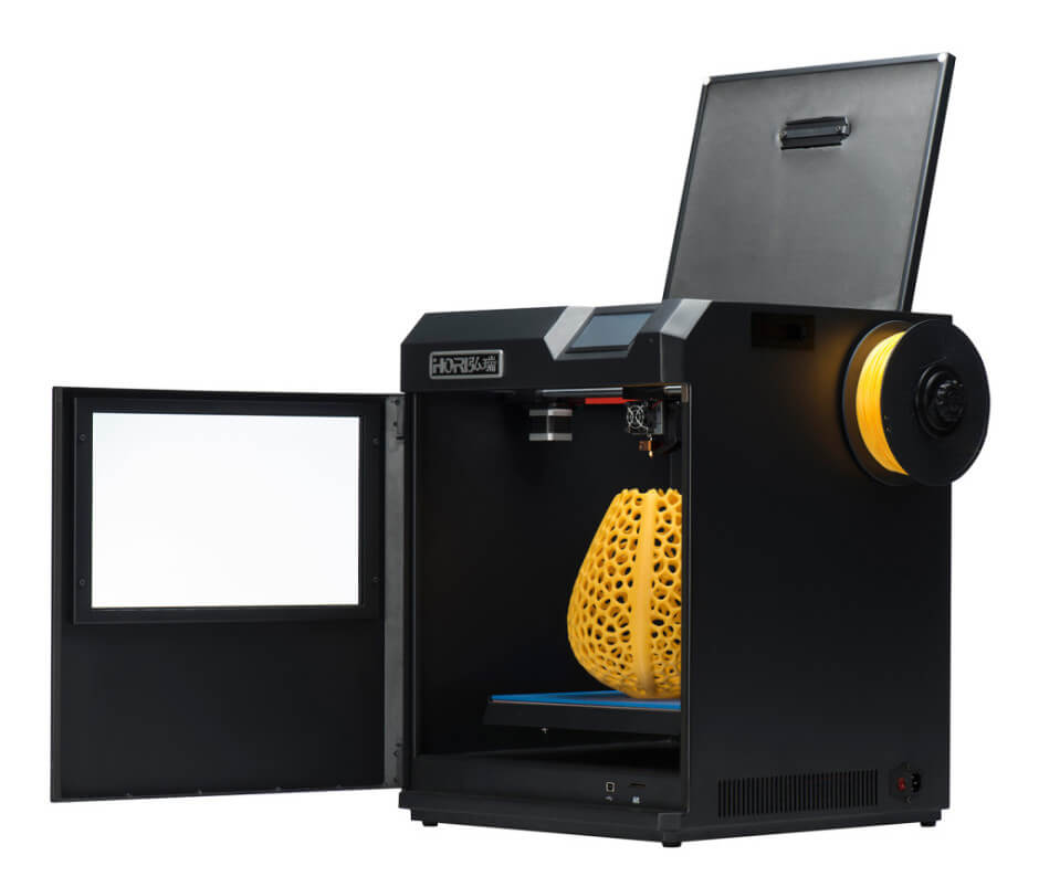 3D принтер HORI FOBOS доступный и надежный используется для решений повседневных задач в 3D печати, имеет закрытый металлический корпус и удобный сенсорный экран. Модель может применятся как для домашней печати так и в офисе, поддержи все основные типы материалов. Достаточно быстрая скорость печати принтера 150 мм/с и при этом у принтера высокая повторяемость изделий. Большая область печати которая закрывает большинство задач.