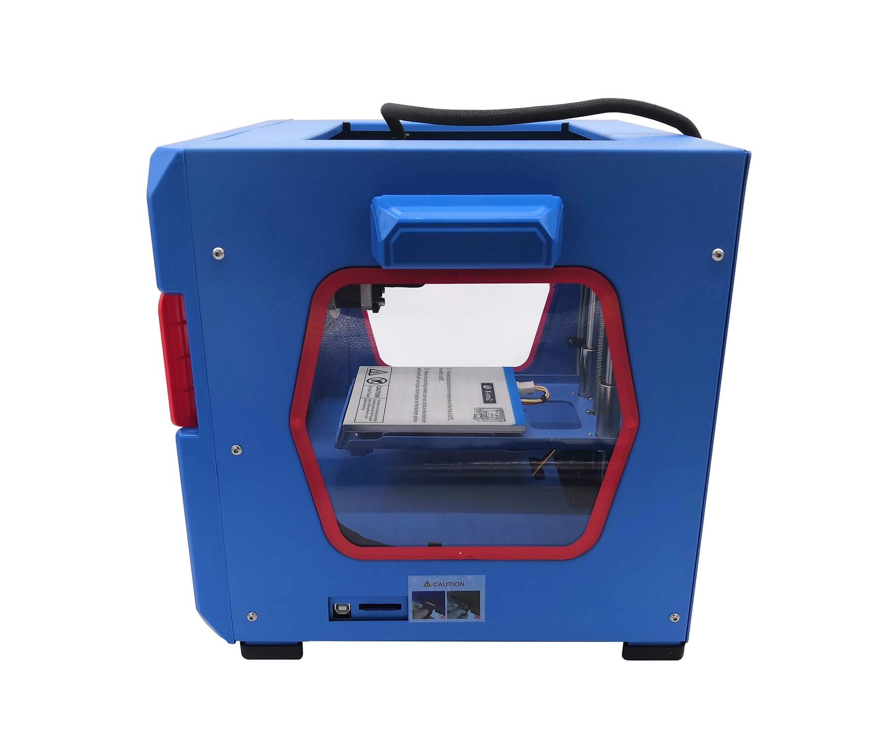 Рабочая область печати составляет 150х150х150 мм. Экструдер с активной системой охлаждения обеспечивает высокое разрешение печати. Мощная турбина вентиляции создаёт сильный поток воздуха рядом с соплом, что позволяет улучшить качество работы. Температура нагрева экструдера - 250 градусов. Закрытая конструкция корпуса делает принтер безопасным для детей.