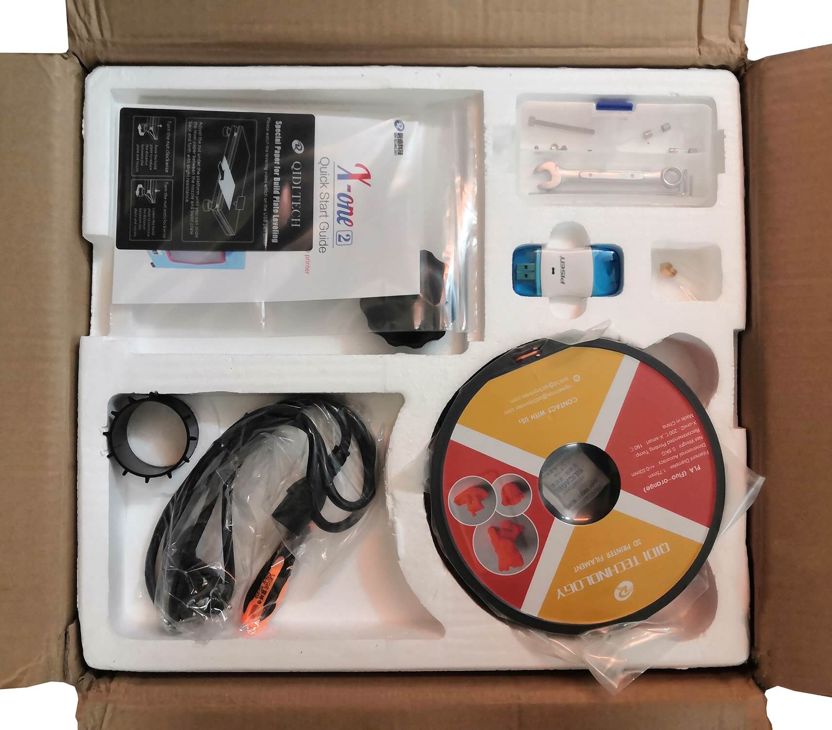 Для работы используются разные виды филаментов: ABS, PLA, TPU. Нагреваемая платформа толщиной 6 мм изготовлена из алюминия и имеет хорошую адгезию ко всем видам пластика. Данные для печати можно передавать через кабель USB, SD карту и флеш-накопитель. Принтер поддерживает большинство распространенных форматов файлов.