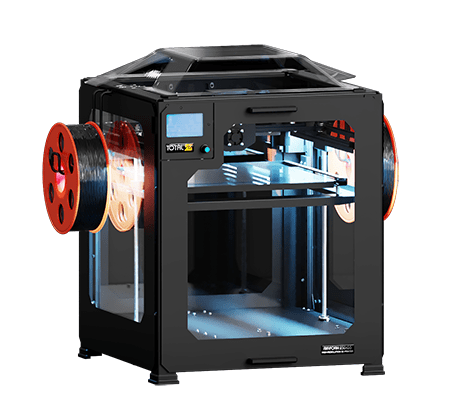 Область печати является полностью закрытой, а её габариты составляют 250х250х250 мм. Стенки корпуса выполнены из листовой стали толщиной 2мм. Печатная платформа из высокопрочного стекла является нагреваемой и имеет максимальную температуру 110 градусов.