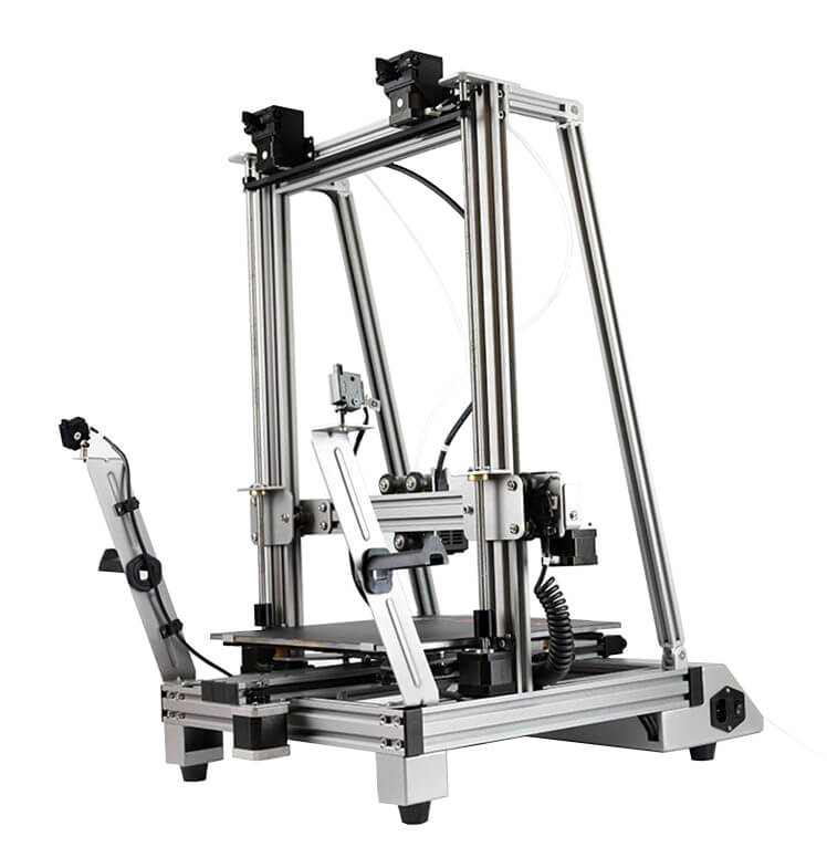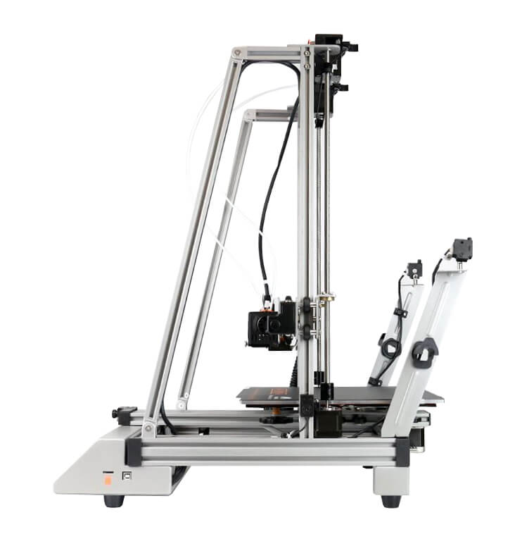 3D принтер оснащен двумя экструдерами для печати с поддержками и печати разными цветами. Максимальная температура нагрева экструдеров 260°С подходит для работы с базовыми пластиками типа PLA, PETG, FLEX, а также с декоративными материалами с температурой плавления до 260°С.