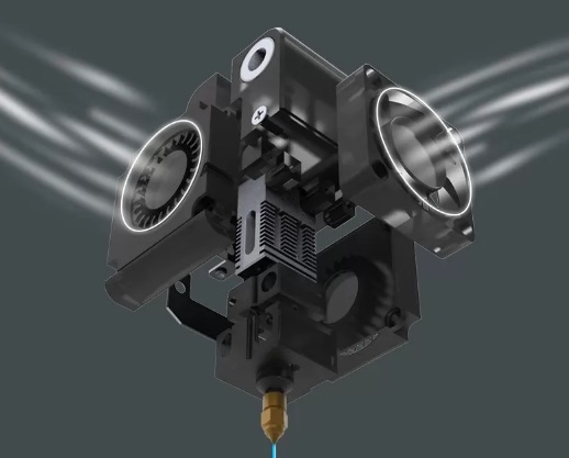 Экструдер Bowden способен разогреваться до 260 градусов. Вдобавок в вместе с принтером идёт новый комплект сопел с повышенной теплопроводностью. Они обеспечивают более стабильную печать, плавную экструзию и обладают отличной стойкостью к износу. Печатная платформа, выполненная из закалённого стекла, является подогреваемой, с максимальной температурой 100 градусов.