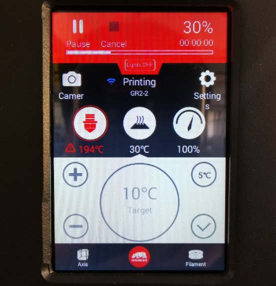 GR2 оснащен материнской платой с процессором A33 Quad Core. Также из нововведений появился сенсорный экран для управления настройками печати. 3D принтер оснащен встроенной камерой с разрешением 2К благодаря которой можно наблюдать за процессом печати, а также записывать Time-lapse видео.