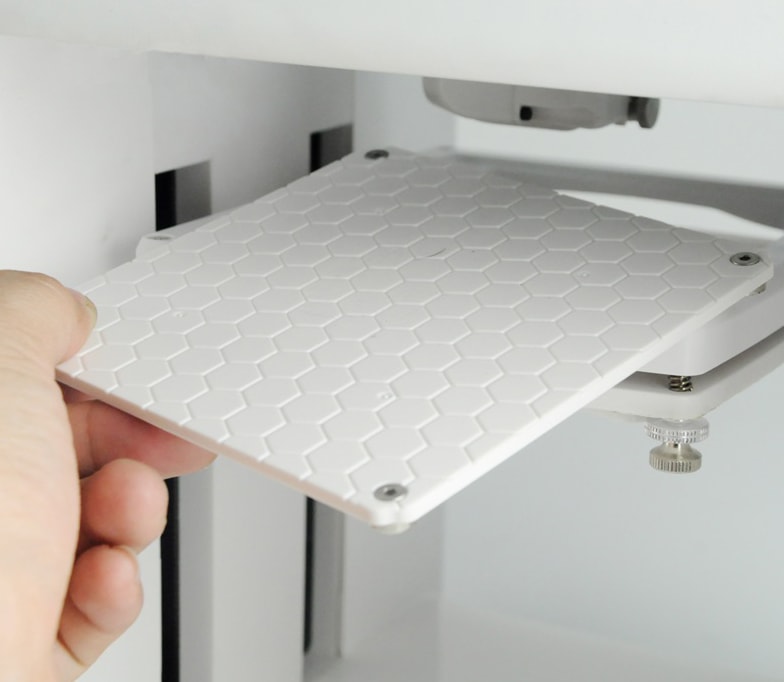Duplicator 10 предназначен для печати PLA пластиком, так как рабочий стол не оснащен подогревом, а максимальная температура нагрева экструдера составляет 240°С. Калибровка стола производится вручную.