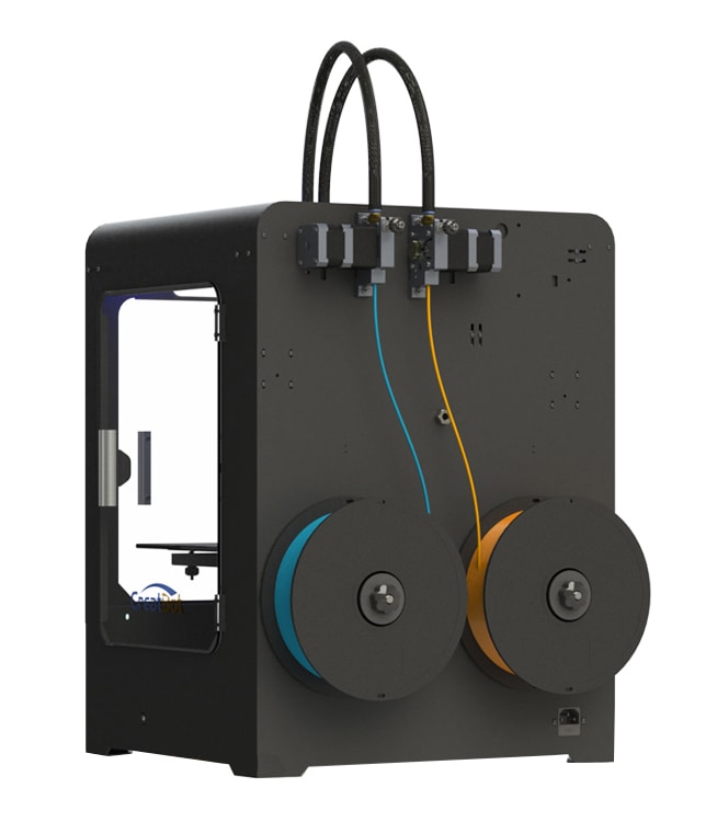 3D принтер CreatBot DX со стальной рамой и двумя печатающими головками, у принтера две печатающие головки и большая область печати. Отлично подойдет для учебных заведений, ЦМИТов, мастерских, производственных предприятий, дизайнерских, инженерных. 3D принтер Creatbox DX обладает рядом действительно важных характеристик для надежного и качественного оборудования, помимо действительно крупной области печати и технологии использования 2-ух экструдеров, для печати разными типами и видами пластика в принтер встроен приятный и яркий LCD дисплей, а экструдер позволяет использовать все современные типы пластика, в том числе и высокотемпературного. Все эти приятные новшества в совокупности с автоматической калибровкой печатного стола и системе контроля первого слоя, упакованные в надежный и прочный делают это решение идеальным для бизнеса.