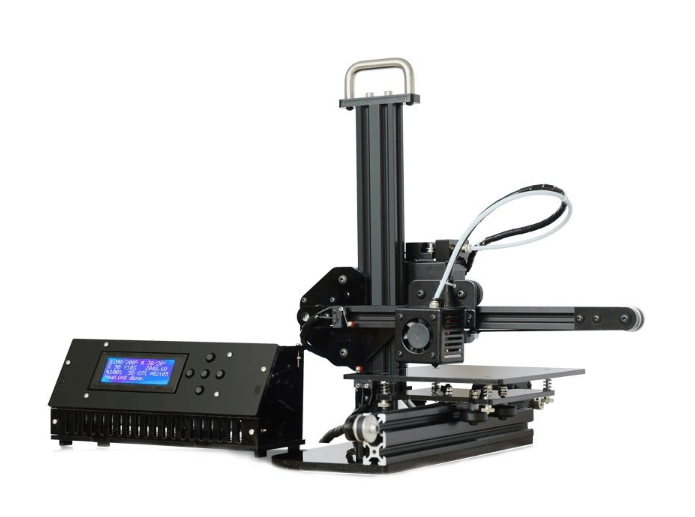 Tronxy X1 имеет стандартную картезианскую кинематику. Рама выполнена из алюминиевого профиля, а движение по осям синхронизировано приводными ремнями. Особенность конструкции - отдельно стоящий блок управления. Изменять настройки печати и следить за ходом работы можно с помощью LCD экрана кнопок управления.