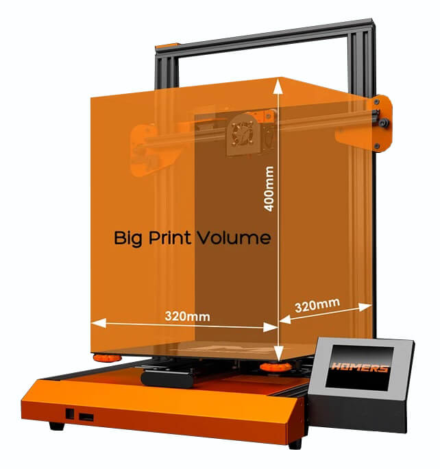 TEVO Nereus 2020 имеет внушительную область построения 320х320х400 мм. Прочный металлический каркас обеспечивает стабильность печати даже на высоких скоростях.