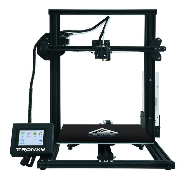 Tronxy XY-3 имеет рамную конструкцию с отдельно вынесенным блоком управления. Изменять настройки печати и следить за процессом можно с помощью цветного 3,5 дюймового тачскрина.