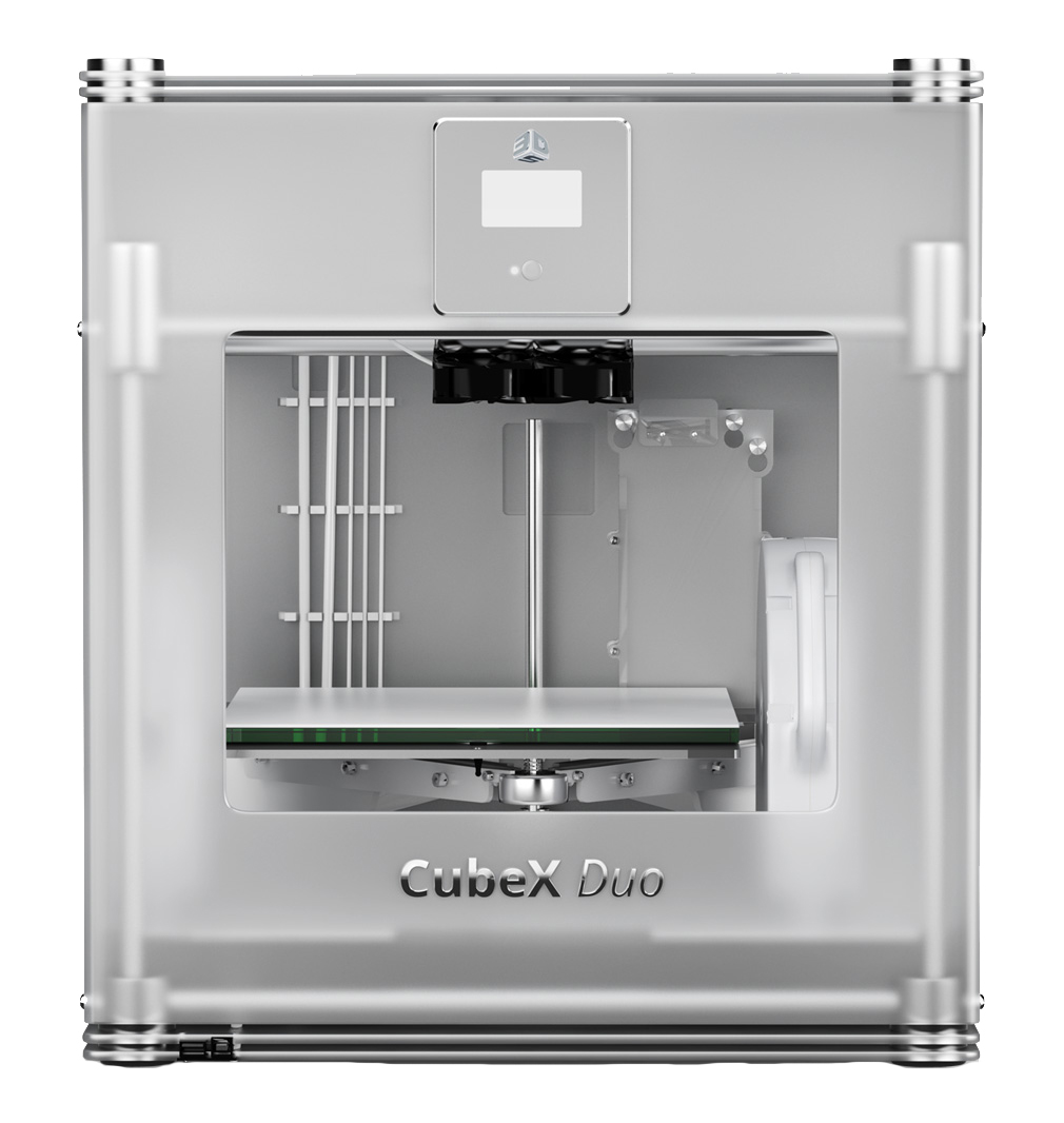 3D принтер 3D Systems CubeX Duo от американского производителя 3D Systems c двумя печатающими головками, может печатать сразу двумя материалами и цветами. Принтер простой в настройке и в работе. Поддерживается печать только PLA пластиком.