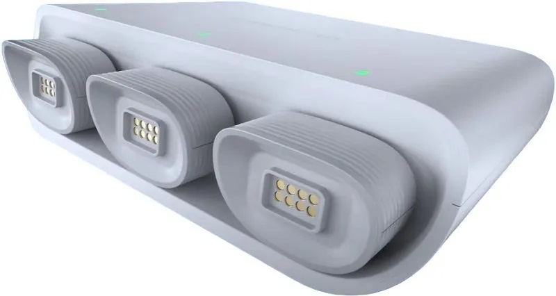 Сканер оснащён встроенным аккумулятором, обеспечивающим до 2 часов непрерывной работы. В комплекте поставляются 3 сменных аккумулятора, что позволяет использовать устройство весь рабочий день без перерывов. После завершения смены сканер устанавливается на зарядную станцию для удобного хранения и подзарядки.