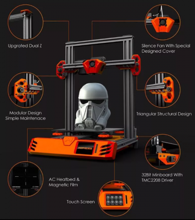 RS отличается от Pro как показано ниже: AC Heatbed/TMC2208/сенсорный экран/Wifi печать/двойной свинцовый винт/32 бит материнская плата