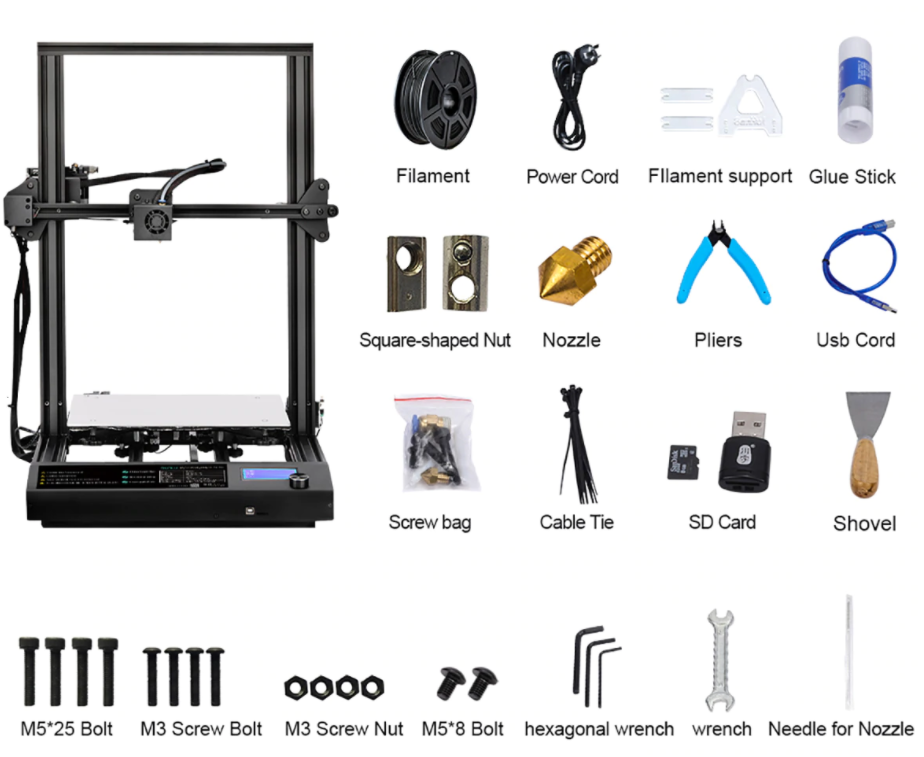 【Большой объем сборки и хорошая экономичность 】 310x310x400 мм SUNLU DIY принтер позволяет 3D новичкам печатать 3d-модели большого размера. Полный набор пакетов 3d принтеров, детальная сборка и руководство пользователя, легко откалибровать и печатать.