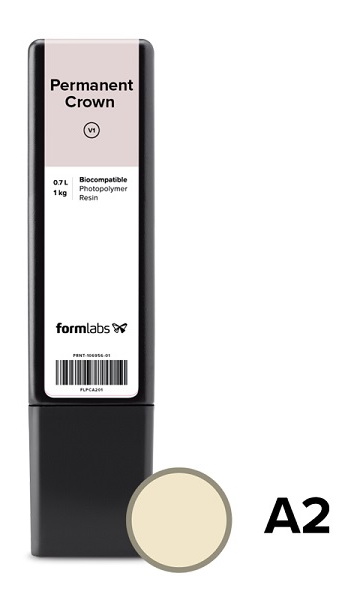 Фотополимер Formlabs Permanent Crown Resin - стоматологическая смола для изготовления постоянных коронок, вкладок, накладок и виниров. Керамический наполнитель в составе делает материал прочным и долговечным.