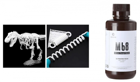 M68 относится к той же группе, что и M58, но немного отличается по своим свойствам. Изделия из него легче переносят растяжение и ударные нагрузки. Эта фотополимерная смола отлично подойдёт для создания фигурок, корпусов, деталей для сборки, прототипов, а также некоторых подвижных функциональных элементов, таких как пружины.