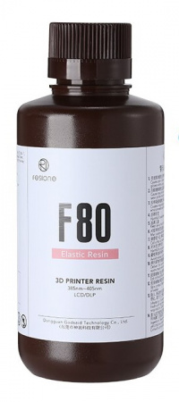 По своим механическим свойствам этот фотополимер во многом напоминает резину. Тем не менее химические свойства у него другие. Изделия из RESIONE F80 рекомендуется использовать при температуре выше 20 °С — при таких условиях сохраняется относительно высокая вязкость материала. Соответственно при снижении температуры уменьшается и текучесть смолы.