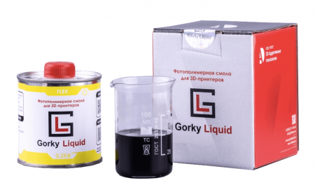 Фотополимер Gorky Liquid Flex - материал российского производителя для печати на LCD 3D принтерах. Гибкая смола с отличными физико-химическими характеристиками позволяет печатать формы для литья некоторых металлов, а также изготавливать гибкие молды для творчества или печатать гибкие изделия.