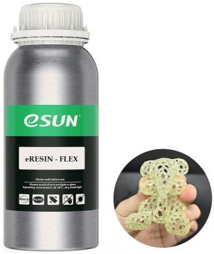 Получаемые из этого фотополимера изделия обладают высокой гибкостью и эластичностью, что удачно сочетается с их большой прочностью на разрыв и высоким коэффициентом жёсткости. Точность печати и её скорость при этом находятся на высоте. Благодаря этим качествам фотополимер eSUN eResin-Flex часто применяется для решения инженерных задач.