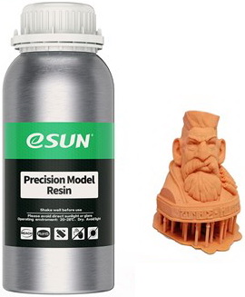 Фотополимер eSUN Precision Model Resin используется там, где прежде всего важна максимальная точность печати с сохранением мельчайших деталей изделия. Таких результатов удаётся достичь за счёт тщательно выверенного баланса вязкости смолы в сочетании с довольно высоким содержанием пигмента. Прозрачность у этого фотополимера намного ниже, чем у многих других, а готовое изделие отчасти напоминает керамику.