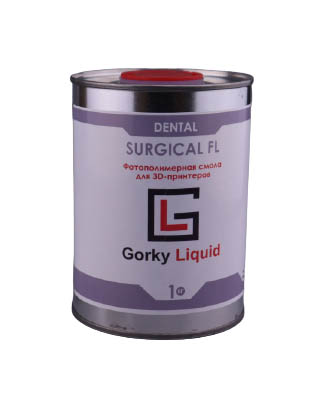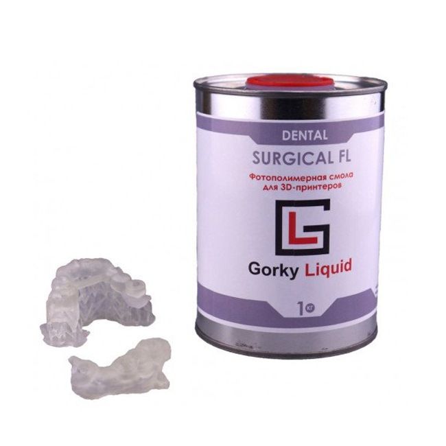 Фотополимер Gorky Liquid Dental Surgical FL - стоматологический полимер, предназначенный для использования на принтерах марки Formlabs. Материал подходит для печати стоматологических шаблонов для хирургических вмешательств.