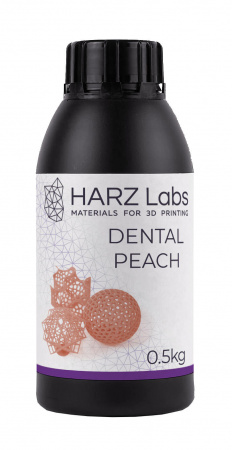 DLP фотополимер HARZ Labs Dental Peach предназначен для изготовления стоматологических изделий. Высокая прочность и устойчивость к высоким температурам позволяет использовать полимерную смолу для изготовления элайнеров.