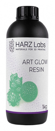 Фотополимерная DLP смола HARZ Labs ART Glow используется для изготовления декоративных изделий. Особый светящийся пигмент в составе обеспечивает зеленоватое свечение в полной темноте. После предварительной полной зарядки, напечатанная фигура может излучать свет в течение 2 часов.