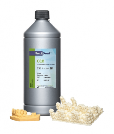Фотополимер NextDent C&B стоматологический используется для печати временных мостов. Биосовместимый материал, стойкий к стиранию.