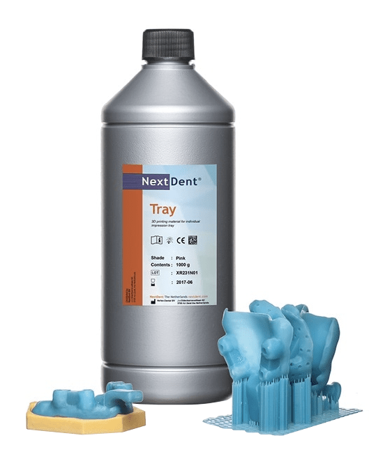 Фотополимер NextDent Tray биосовместимый материал, используемый для производства зубных протезов. Полимер позволяет быстро печатать при высокой точности моделей.