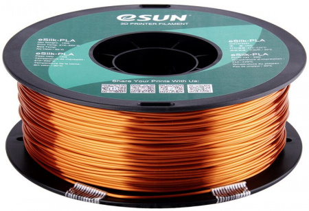 Эта разновидность дизайнерского пластика от eSUN обладает всеми преимуществами линейки eSilk-PLA, то есть изделия из него имеют яркую, глянцевую и как бы шелковистую поверхность. Отличие в том, что у металлизированного пластика поверхность по фактуре напоминает металл: золото, медь или серебро. Такой материал отлично подходит для создания эффектных украшений, различного декора и фурнитуры.
